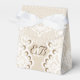 Elegante weiße Spitze mit Perlen beige Gastgeschenk Hochzeit Box mit weißer Spitze auf Sand beige und Ihre Initialen oder Monogramm. Text in braun und weiß. Beachten Sie, dass die Spitze "bedruckt" ist und nicht echtes Gewebe. Dieses mit Monogramm, elegante, elegante und romantische Shabby Chic-Design ist Teil eines Hochzeitsgeschehens und eignet sich hervorragend für eine stilvolle Frühjahrs-, Sommer- oder Herbsthochzeit.