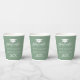 Elegante weiße Typografie im Hintergrund der Sage Pappbecher