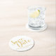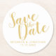 Elegante weiße und goldene Hochzeit retten das Dat Runder Pappuntersetzer