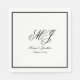 Diese eleganten personalisierten Hochzeitspapiere haben ein klassisches schwarzes Kalligraphieskript mit Ihren Monogrammen, Namen und Hochzeitsdatum auf einem schlichten, weißen Hintergrund, umgeben von einem dünnen schwarz-weißen Rahmen. Entworfen von der Künstlerin Susan Coffey.