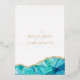 Eine weitere elegante Hochzeitseinladung von Blue Sands Studio. Dieses moderne Interieur besticht durch ein Aquablau-Aquarell-Design mit echten Glitzer-Details auf weißem Untergrund. Klassische Serif-Schriftart werden mit einer Kalligraphie in Goldfolie kombiniert, um Ihre Hochzeit atemberaubend zu machen. Leicht bearbeitbare Vorlage, um Ihre Hochzeitsdetails einzufügen.