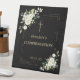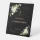 Elegante weiße Blume Gold Confetti Bestätigung Podestal Zeichen. Verwenden Sie das Tool Personalisieren, um Ihre Informationen hinzuzufügen.