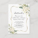 Elegantes Kartendesign mit feinen, weißen Blume in Aquarellfarbe und grünen Blätter, einem goldenen Rahmen in Imitaten auf weißem Hintergrund. Auf der Rückseite weiße Blume Bouquet. Verwenden Sie das Tool Personalize, um Ihre Informationen hinzuzufügen, Schriftart zu ändern, die Farben des Schriftartes zu ändern. Für passende Artikel besuchen Sie bitte meine Delicate White Blume Collection.