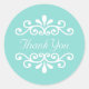 Elegante White Blume Vector auf Aquamarin Danke Runder Aufkleber