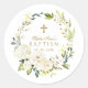Elegante White Cream Blume Gold Cross Taufen Runder Aufkleber