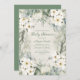 Elegante White Floral Sage Green Blätter Kinderdus Einladung