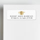 Eleganter, weißer Abschluss-Rücksendetikett mit goldenem Gradmütze und Name und Adresse des Absolventen in moderner Schrift.