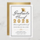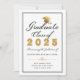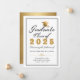 Mit dieser eleganten, individuell gestalteten Ankündigungskarte kündigen Sie Ihren Abschluss stilvoll an. Dieses typografische Design zeigt die Worte Graduate Class von 2025 mit Ihrem Namen, Schule und Datum zu personalisieren in Gold und Weiß Akzent durch ein Imitat goldenen Graduate Cap und gerahmt in schwarz. Die Rückseite der Karte ist weiß. Entworfen von Susan Coffey.