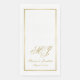 Dieses personalisierte Hochzeitspapier Gasttücher Imitat Gold-Skript mit Ihren Monogrammen und Namen und Hochzeitsdatum auf einem einfachen weißen Hintergrund in einem dünnen goldglänzenden Rahmen. Entworfen von der Künstlerin Susan Coffey.