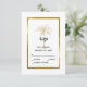 Mit dieser eleganten RSVP-Karte mit modernem Drehbuch in schwarzem Text, inklusive einer künstlerischen Palme und einem metallischem Goldrahmen auf der Vorderseite der Karte, können Sie Ihre Gäste auf Ihre Hochzeitseinladung antworten. Auf der Rückseite ist ein schwarzer Hintergrund.