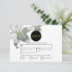 Dieses Design zeichnet sich durch Blume aus weißer Lilie aus. Die eleganten weißen Lilien ergänzen die elegante, moderne, schwarze Kreissage, die den Titel umgibt. Eine perfekte Verbindung von Moderne und Chic mit grünen Farbtönen. Grün, Schwarz und Weiß passen perfekt zu einer eleganten Blumengarten-Hochzeit. Einzigartiges Hochzeitskartendesign mit modernen Elementen. Auch die passenden Hochzeitseinladungen und andere Schreibwaren sind verfügbar.