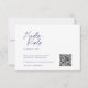 Diese elegante weiße RSVP-Karte zeichnet sich durch ein raffiniertes und modernes Kalligrafiedesign aus, mit "Kindly Reply" in stilvollem marineblau-Schrift. Ein komfortabler QR-Code ermöglicht es den Gästen, ihre Speisen einfach online zu UAWG und auszuwählen. Personalisiert mit den Namen des Paares und dem Hochzeitsdatum, ist diese raffinierte Einladungskarte perfekt für formelle und zeitlose Hochzeitsthemen. Eine moderne und stilvolle Art, die Reaktionen der Gäste zu sammeln und gleichzeitig eine Touch Eleganz in Ihre Hochzeitsarbeit zu integrieren.