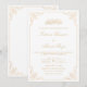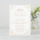 Elegante Vintage islamische Hochzeitseinladung in Weiß und Gold. Die Farbe dieser Einladungskarte sowie die Farbe und der Typ der Schriftart können Sie über das benutzerfreundliche Menü von Zazzle anpassen. Sie können den Namen, das Datum, die Adresse und die Erholung der Informationen ändern. Ein weißer Umschlag ist ebenfalls enthalten.