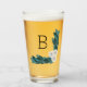 Elegante weiße ranunculus Blume und grünes Blattglas mit Monogramm-Buchstaben.