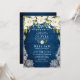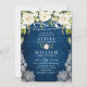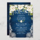 Elegante White Roses Lace Rustic Blue Wood Wedding Einladung