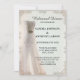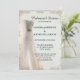 Eine elegante, weiße Hochzeitseinladung mit Hochzeitskleid und verziertem Rahmen. Diese Einladung ist Teil eines Set.