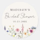 Elegante Aufkleber mit Blumenmuster, die einen unteren Rand von Aquarellfarben und Blattwerk in Rosa-, Gelb-, lila-, Blau- und Grüntönen auf cremefarbenem Hintergrund aufweisen. Personalisieren Sie die Aufkleber für das Brautparty der Wildblume mit dem Namen der Braut und dem Datum. Die personalisierten Aufkleber für die Wildblume eignen sich ideal für Brautpartys im Frühjahr und im Sommer. Siegel Einladungen, Brautparty Favoriten, und vieles mehr!