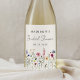 Elegante Blumenweinetiketten mit einem unteren Rand aus Aquarellfarben und Blattwerk in Rosa, Gelb, lila, Blau und Grün auf cremefarbenem Hintergrund. Personalisieren Sie die Weinetiketten der Wildblume mit dem Namen der Braut und dem Datum. Die Weinetiketten der personalisierten Wildblume eignen sich hervorragend für Brautparty im Frühling und im Sommer.