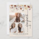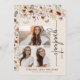 Feiern Sie Ihren Abschluss mit unserer Rustic Boho Wildblumen Graduation Party Einladung, mit einem schön arrangierten Seitenbukett von rustikalen Wildblumen vorne und einer 3-Foto-Collage auf der Rückseite, um Ihre Lieblingsmomente zu präsentieren. Diese Einladung verbindet getrocknetes Gräser, zarte Blätter und Vintage Blumen in warmen, erdigen Tönen von Bräune, Braun, Rost, Terrakotta, lila, blau, rosa und gebrannt Orange. Vollständig anpassbar, können Sie die Formulierung, den Stil des Schriftartes und den Hintergrund individuell gestalten, um einen wirklich einzigartigen Sake zu schaffen. Ob als Gymnasiast oder als Absolvent einer Uni - diese Einladung verleiht Ihrem Fest die perfekte Mischung aus Eleganz und Persönlichkeit - schon heute können Sie Ihre ganz persönlichen Wünsche erfüllen!
