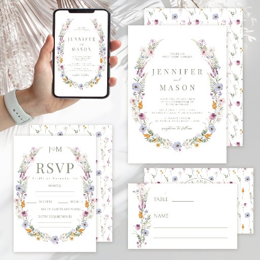 Elegante Wildblume Hochzeit Einladung Bauchband Einladungsbanderole