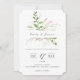 Elegante farbenfrohe Aquarellbilder und botanisches Blattwerk, Einladung zur Hochzeit. Der Rahmen ist in hübschen Pastellfarben wie Lila, Rosa und Grüntöne gehalten. Die Backfarbe, in zartem Pastellmaul dargestellt, kann individuell angepasst werden. Modernes und schicke Typografie-Design schafft eine wirklich einzigartige Hochzeitseinladung.