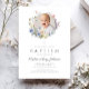 Elegante Wildblumen Foto Taufe Einladung. Für beste Ergebnisse laden Sie ein quadratisches Bild des Babys.