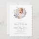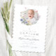 Elegante Wildblumen Wreath Girl Taufe Foto Einladung. Für beste Ergebnisse laden Sie ein quadratisches Bild des Babys.
