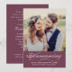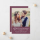 Verkünden Sie Ihre Hochzeit bei Familie und Freunden und laden Sie sie ein, mit einem Empfang nach der Zeremonie zu feiern. Dieses Design der Fotokarte zeigt ein Foto der Braut und Bräutigam mit Ankündigung in elegantem Drehbuch und ihren verheirateten Namen und Hochzeitsdetails. Die Rückseite der Karte lädt zu einer Hochzeitsfeier ein. UAWG sind enthalten. Burgundy / Wein Hintergrund Farbe und Text kann auf Ihre spezifischen Bedürfnisse angepasst werden.