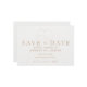 Feiern Sie Ihre Liebe mit einem Toast und einem zeitlosen Stil. Diese elegante Wine Toast Save the Date-Karte zeichne eine moderne Linie, in der ein Paar sanft klingende Weingläser stehen, die den süßen Anfang Ihres Lebens symbolisieren. Mit eleganter Goldserf-Typografie und einem sauberen, modernen Layout ist dieses Design perfekt für Paare, die subtile Schönheit und raffinierten Charme schätzen. Personalisieren Sie Namen, Datum und Ort, um Ihre Hochzeitsvision zu erfüllen. Egal ob Sie eine Weinhofhochzeit, eine Städtereise oder eine intime Ansammlung mit Ihren Lieblingsmenschen planen, dieses Design Set den perfekten Ton - mühelos, herzlich und herzlich.