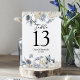 Elegante Winter Blau und Weiß Blume Tischnummer