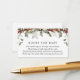 Eine Reservierungskarte für Babydusche. Mit Aquarell Wintergrün und Blumen mit Gedicht: "EINE KLEINE ANFRAGE, HOFFEN WIR NICHT ZU SCHWIERIG BITTE BRINGEN EIN BUCH ANSTATT EINER KARTE, SIE WERDEN DAS BUCH CHERISIEREN, GUT LIEBT ODER BRANDNEUE BITTE UNTERZEICHNEN SIE DIE INNEN MIT EINER BOTSCHAFT VON IHNEN!"