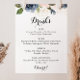 Dieses elegante, im Winter blühende Hochzeitsgetränk-Menü ist perfekt für eine moderne Hochzeit. Das Design ist in dunkelblau, blau, blau, navy, rosa, rot, goldgelb und grün, Blume gehalten und in eleganten Bouquets untergebracht.