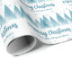 Eine elegante Reihe von Wintertannenbäumen und Schneeflocken über Ihrem personalisierten Frohen Weihnachtsskript und Ihrem Familiennamen in hübschem Blau unter dem schneebedeckten Wald. Ein modernes Urlaubsprojekt mit Ihrer individuellen Botschaft auf einem schönen Verpackungspapier.