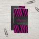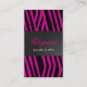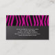 Visitenkarte mit einem rosa Zebradruckentwurf. Diese Karte ist zur Kundenbezogenheit mit Ihren Geschäftsinformationen bereit. Aller Text kann geändert werden - ändern Sie die Art, Farben, Größen, fügen Sie hinzu oder entfernen Sie Textfelder zum Anzug Ihr Bedarf. Wenn Sie irgendeine Hilfe bitte, benötigen Kirsty auf kirsty_pargeter@yahoo.co.uk zu emailen