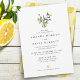 Einfache und elegante Aquarellfarben Zitronen Zitrusgrün in einem Glas Hochzeitseinladung mit klassischem Schriftart unten. Auf der Rückseite des Einladens ist Aquarelllachs Muster.