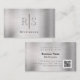 Dieses elegante Brushed Silver Design mit schwarzem Namen und Imitate 3-D Monogramm wird ihre Aufmerksamkeit erhalten und funktioniert für viele Berufe gut. Ideal für Innenarchitekten, Berater, Hair- und Makeup-Künstler, Corporate Professionals, Realtors, Vertriebsmitarbeiter, Anwesen-Planer und vieles mehr. Fügen Sie Ihr Monogramm, Name, Beruf, Adresse, Telefon/Zelle, QR-Code und E-Mail hinzu.