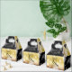 Feiern Sie den 50. Hochzeitstag mit diesen vergessenen Gefälligkeitsboxen! Elegante schwarz-weiße Serifenschrift mit sechseckigen Konfetti auf alternierender Goldfolie und schwarzem Hintergrund verleihen diesem besondere Anlass eine unvergessliche Touch und einen außergewöhnlichen Meilenstein. Passen Sie sich mit den Namen des glücklichen Paares, den Jahren der Ehe und den personalisierten Glückwünschen für ihren goldenen Jahrestag an. Design © W.H. Sim. Weitere Informationen unter zazzle.com/expressionsoccasions