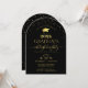 Elegante Abschluss Imitats Metallic Gold 2025 Confetti Black Graduation Party Arch Einladung. Mit dieser schicken bogenförmigen Einladung, die mit einem eleganten Imitat aus metallischer Goldfolie mit dem Titel CLASS OF 2025 und dem Graduierungsdeckel und dem Namen Ihres Absolventen in einem extravaganten Kalligraphieskript aufwartet, laden Sie die Gäste zum Party Ihres Absolventen ein. HILFE: Für Hilfe bei der Modifikation oder Personalisierung des Designs, bei der Übertragung des Designs auf ein anderes Produkt oder wenn Sie die Dinge koordinieren möchten, wenden Sie sich bitte an den Designer, BEVOR Sie über Zazzle Chat oder makeitaboutyoustore@gmail.com bestellen.