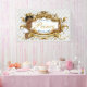 Adorable afrikanische Prinz mit einer Goldkrone mit weißen Windeln und blauen Hausschuhen auf einem extravaganten, goldenen filigranen Rahmen auf weißem, diamantenkonturiertem Hintergrund. Passen Sie Bannertext an! ©2022 Miss Sassy Party Designs