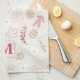 Elegantes anfängliches, blumenpastellfarbenes Monogramm rosa modernes Küchentuch. Dieses pastellfarbene Muster ist braun und rosa, abstrakt und Elfenbeinblumen mit einem schönen, stylischen Text. Eine Geschenkküche zum Geburtstag.