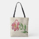 Überall in gedruckter Tasche hübsch, mit einem antiken französischen Buchstaben als Hintergrund, Elfenbeinspitze oben auf der Tasche, und einer großen Aquarellfarben-Blume in der Mitte. Anpassen, um Ihren eigenen Text hinzuzufügen.