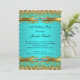 Eleganter Aquamariner Blue Gold Damask Diamond Geb Einladung