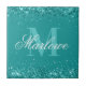 Eleganter Aquamariner Glitzer Blue Green Monogram Fliese