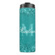 Eleganter Aquamariner Glitzer Blue Green Monogram Thermosbecher
