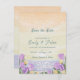 Elegante Hochzeit am Meer - Save-the-Date-Karte mit Aquarell-Sonnenuntergang und floralem Design.
