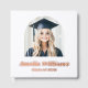 Abschluss Gästebuch mit Ihrem Foto in einem Bogen-Rahmen und dem Namen des Absolventen in einem kühlen, Retro-Stil Schriftart. Echter Folientext auf weißem oder benutzerdefiniertem Hintergrund.