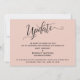 Die Besonderheit dieser Suite liegt in dem aufwändigen, wirbelnden Script-Schriftart, der für Akzent-Sätze verwendet wird. Für den Fall, dass Sie Ihre Gäste gelassen wissen müssen, dass Ihre Hochzeit verschoben wurde, bietet diese Karte eine elegante, einfache Option. In diesem Stück wurde der Kalligraphie-Schriftart verwendet, um eine Grafik zu erstellen, die das Wort "Update" darstellt. Verwenden Sie die Vorlagenfelder, um Ihre persönlichen Daten hinzuzufügen und dieses Design zu Ihrem eigenen zu machen. Der Hintergrund kann in eine beliebige Farbe geändert werden. Bitte kontaktieren Sie uns für spezielle Anfragen oder für individuelle Betreuung. // 98 //