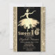 Eleganter Ballerina Gold Glitzer Sweet 16 Einladung