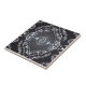 Luxuriöses Keramik Fliesen Design mit einem silbernen barocken Rahmen auf einem schwarzen Farbverlauf Hintergrund.
