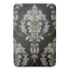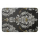 Ein luxuriöses und verziertes Damast-Muster mit aufwändigen Blumenmotiven in Weiß und Gold auf schwarzem Hintergrund. Das Design ist klassisch und raffiniert, ästhetisch, wie man es in Vintagen Tapeten, Textilien und hochwertigen Dekorationen findet.